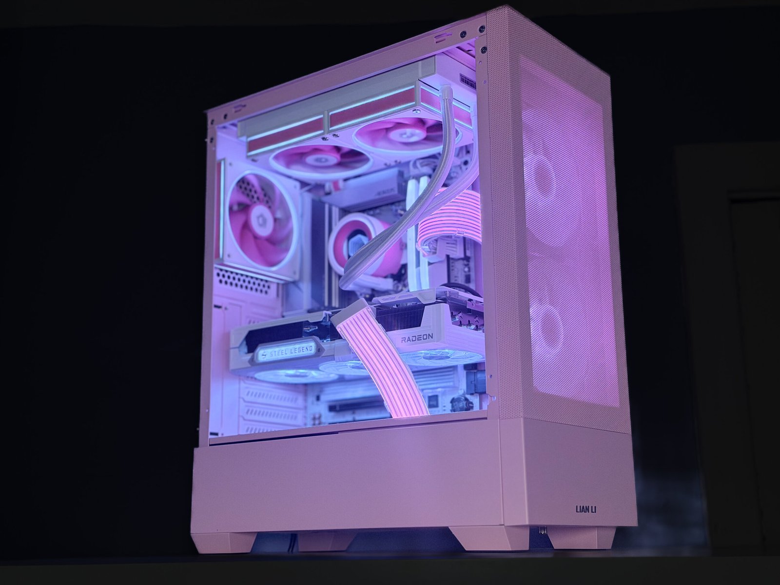 | Fans | 3x 120mm ID Cooling Pink Fans + 2x 140mm Lian Li White Fans (5 in total) |